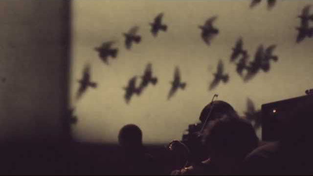 Tak lama kemudian backdrop di belakang mereka mulai menampakkan visual. Sorotannya datang dari belakang kami, sontak saya melihat ke belakang sejenak. Terlihat deretan proyektor 8mm menembakkan imajinya ke layar di belakang mereka. GBYE memang selalu membawa operator proyektor pada setiap panggungnya, mereka menghitung perannya sebagai bagian dari grup, tak berbeda dengan anggota kolektif lainnya, seperti pemain gitar atau drum. Ia beroperasi selayaknya seniman pertunjukan, berimprovisasi dengan pita dan proyektor, kadang melibatkan api dan air dan entah apa lagi untuk menghasilkan efek visual luar biasa diluar dugaan. Tanpa keterlibatan digitalisasi sedikitpun.