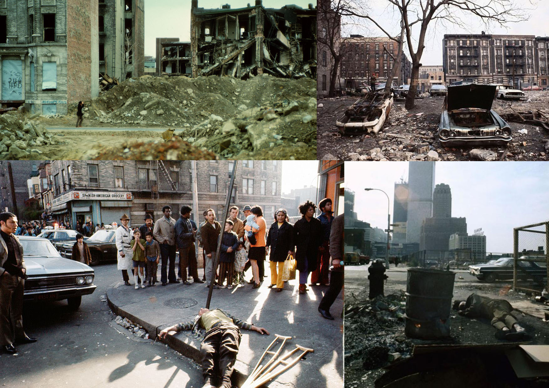 New York era itu adalah New York yang terpuruk dalam kemerosotan ekonomi dan sosial. Krisis fiskal yang dimulai di awal 70-an menemukan puncaknya menjelang dekade itu berakhir, tepatnya di tahun 1977. Bisnis lokal satu persatu tutup. Restoran konon nyaris tidak ada, meskipun ada sudah sangat tak layak dan juga tak aman. Bangkai kendaraan di mana-mana, pula bangunan kosong yang nampak ditinggalkan dan terbakar akibat gelombang panas yang melanda sepanjang musim. Fasilitas publik banyak yang tidak lagi berfungsi, atau dalam kondisi buruk termasuk pula jalanan. Pekerjaan sulit ditemukan, hanya sedikit saja sekolah yang tersisa, terlebih uang dan layanan sosial. Tak perlu diceritakan soal mewabahnya narkotika dan kejahatan. Itu sudah satu paket dengan kemiskinan. Urban Decay.