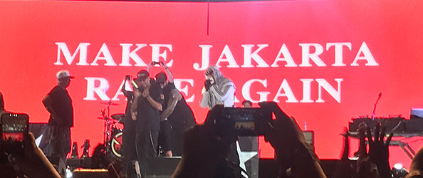 Di akhir set saat mereka memainkan “Bombtrack” sebagai encore, saya baru merasakan betapa kosongnya performa mereka kemarin. Bukan karena kualitas panggung mereka yang sebetulnya cukup untuk sekedar jadi momen penting bernostalgia, namun karena ada yang tak hadir malam itu jika merujuk pada legacy mereka. Di akhir acara mereka memasang tulisan besar “Make Jakarta Rage Again” pada backdrop LED panggung dan saya tak merasa terprovokasi sedikitpun, bahkan kemungkinan besar tak ada seorangpun yang gelisah pasca acara. Terhibur mungkin, marah tidak. Persis seperti kondisi pikiran anak muda di era Nike Ardilla melejit, Bucek Depp merajai majalah remaja, Ersamayori memenangkan Gadis Sampul, Sepultura datang mengunjungi Lebak Bulus dan Bon Jovi baru potong rambut.